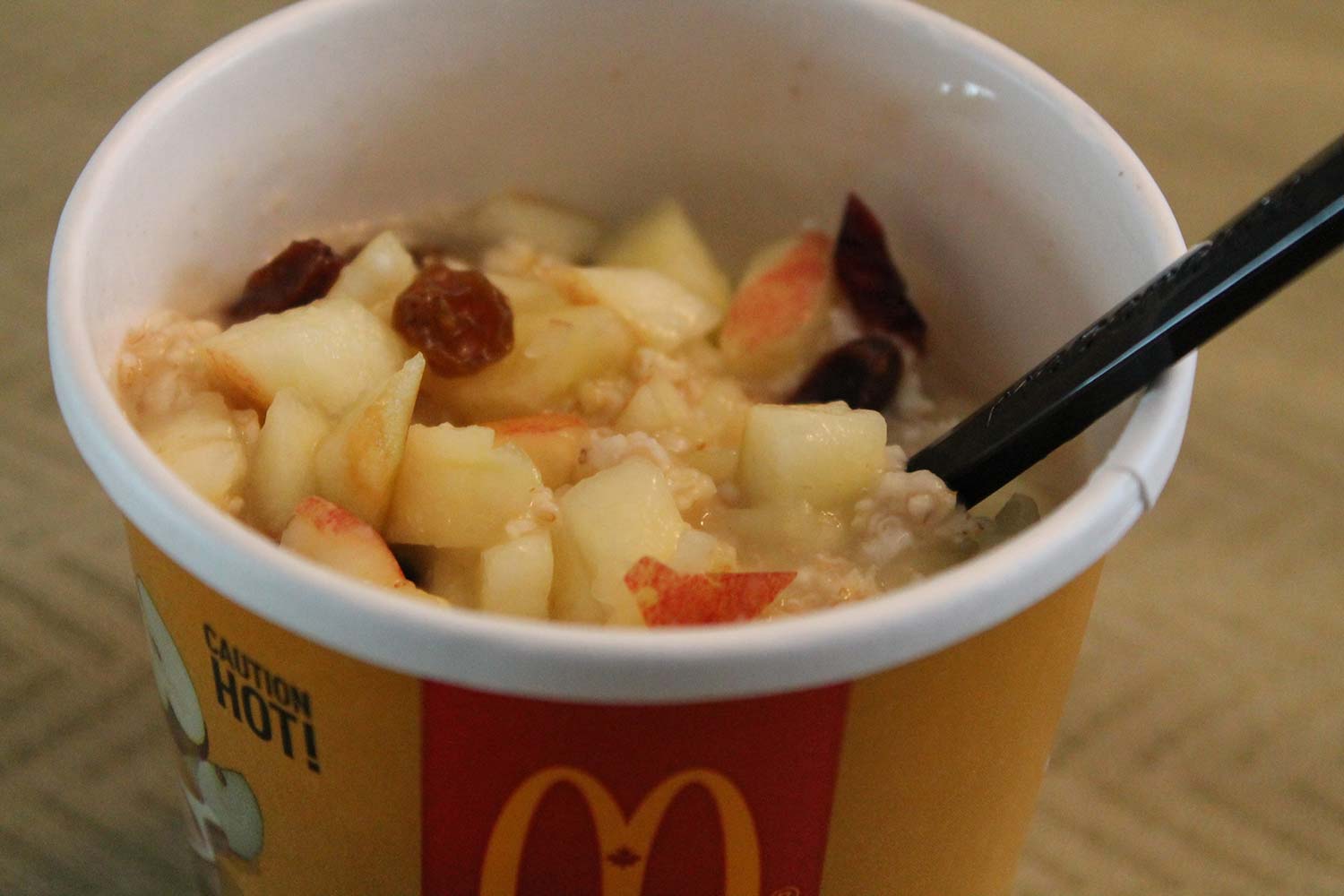 What is it? Fruit & Maple Oatmeal from McDonald’s. Yes, I said McDonald’s. I know…I usually give you good advice but you’re wondering if I’ve lost it this time. Seriously Tanya? SERIOUSLY.