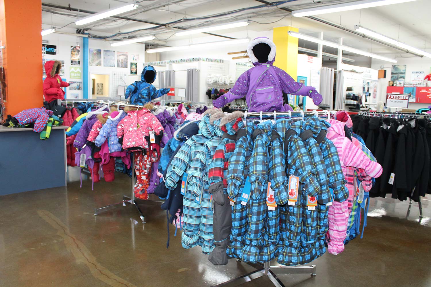 NOT only do they sell at great prices, but they are fussy about what they carry. Josie, owner at Brador Hiver Winter Warehouse, walked me through & explained how they will only carry snowsuits for kids that have a rating of 5,000 mm. “Five thousand what???” you may ask. “mm” is a waterproof rating and 5,000 mm means that the fabric can withstand 5,000 mm of rain in 24 hours before it permeates. They’ve got minimum requirements for wind & pay attention to breathability as well.