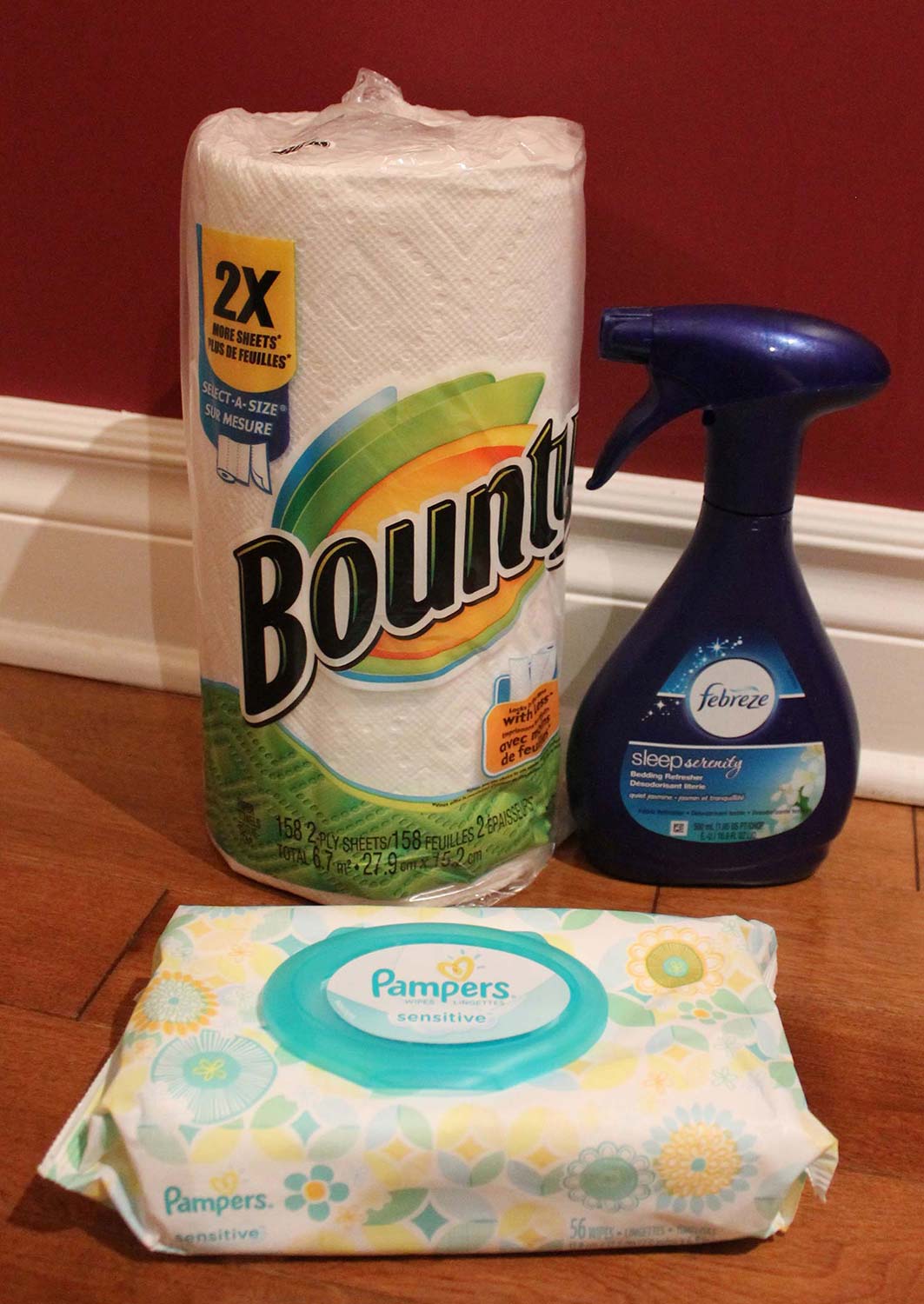 Paper Towels: I like Bounty Select-a-size (they’ll last longer because you only take what you need)- Use them to wipe up spills and can double as napkins.- Baby Wipes: Whether or not there are diapers to change- these can clean up sticky hands, messes & more! My preference: Pampers sensitive/perfume-free – When we use them to wipe our mouths after eating – I prefer not to taste ‘baby fresh’!
