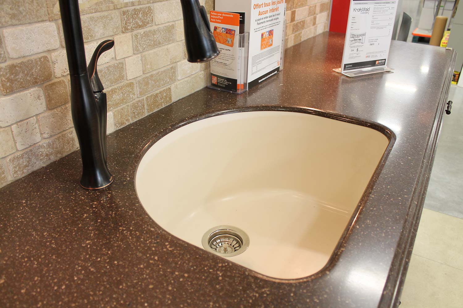 - can be moulded into one virtually seamless piece (including both sink and backsplash!) – which also means less caulking and less maintenance.