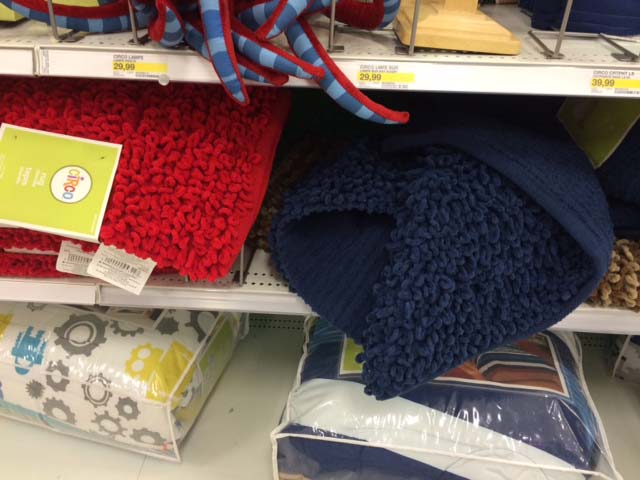 The little bedside rug for $24.99 in the US? $24.99 right here in Pointe Claire (except, by the way, some of the bright pastel colours which happened to be on liquidation so we picked them up for an incredible $12.49 each!!!)