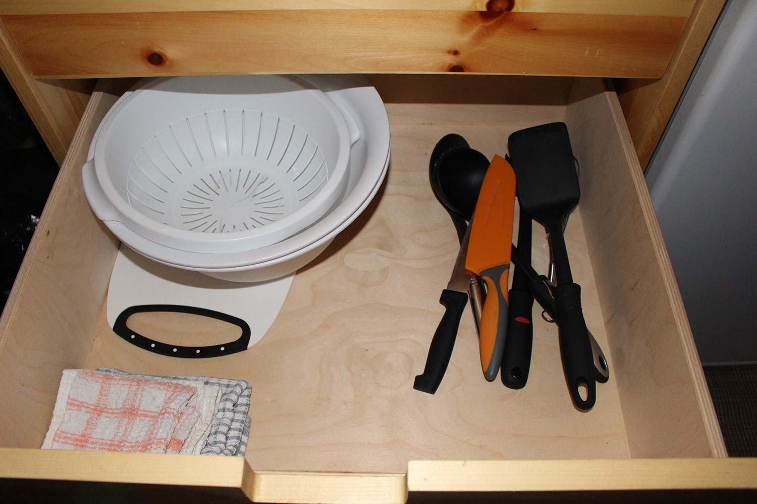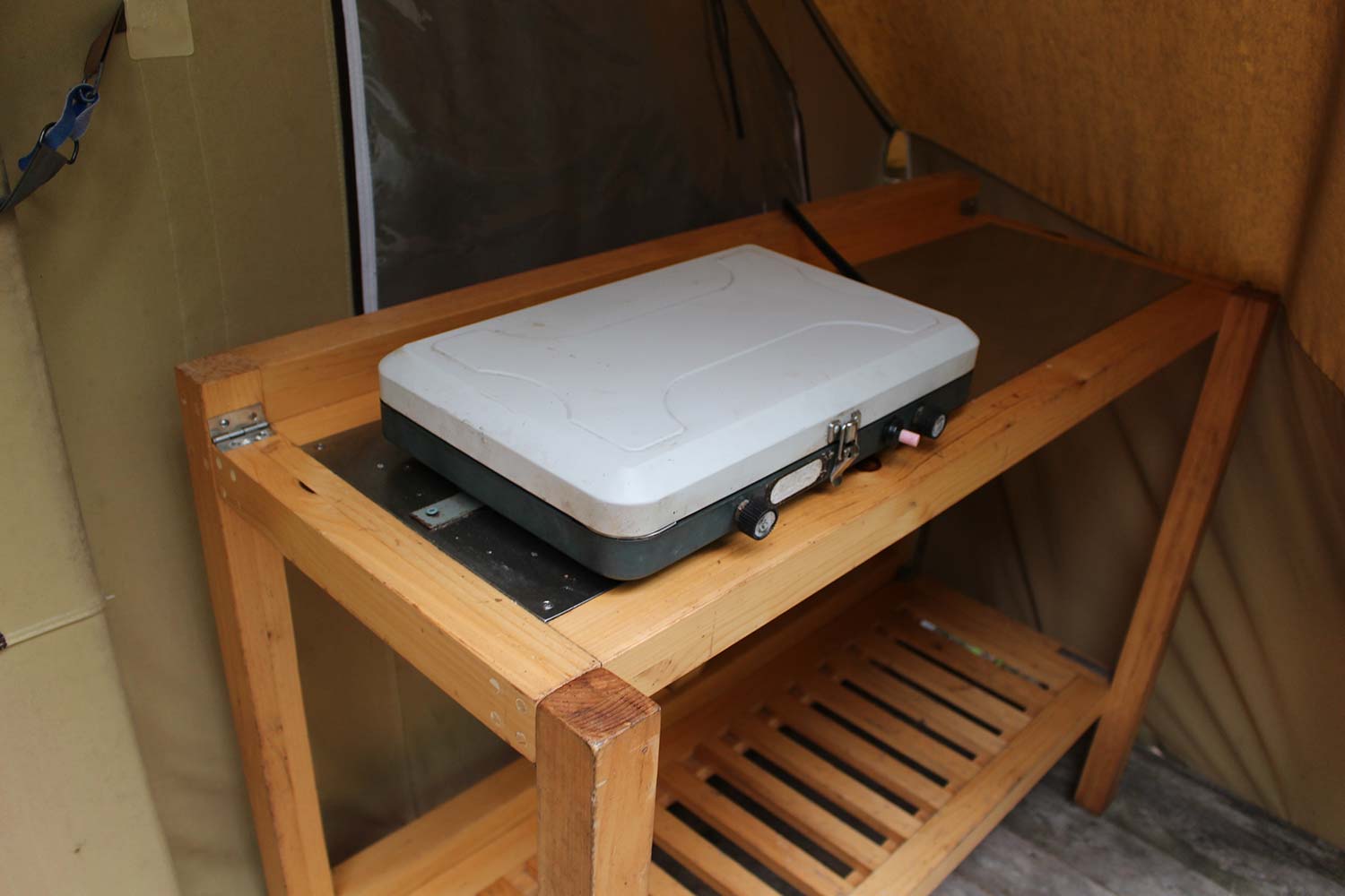 We used bottled water to get the pasta pot ready, we made a salad and grabbed another pot to get the tomato sauce going. The two-burner gas stove provided on the porch was perfect. P.S. It was attached to a large propane supply – no issue with running out đ