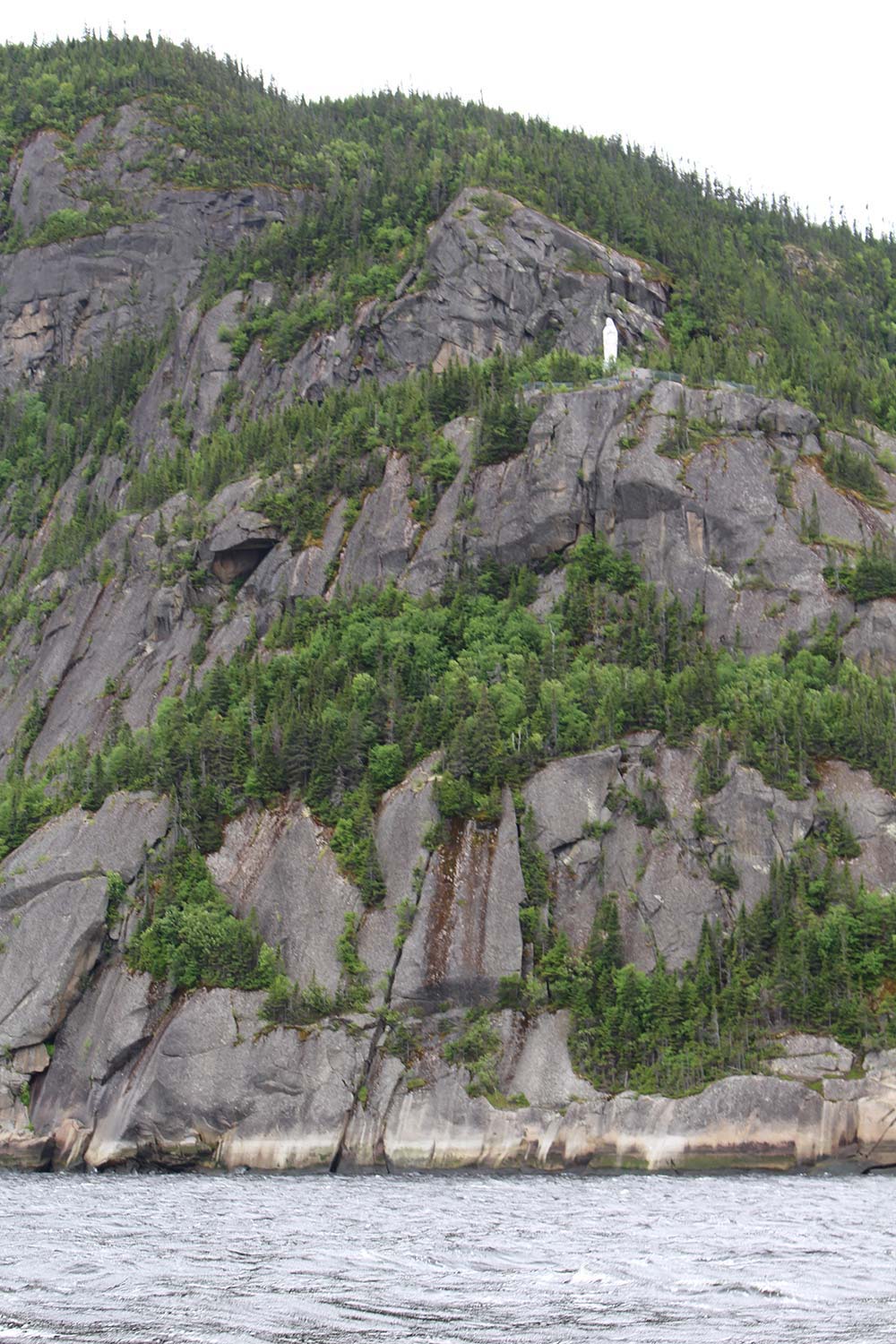 Mathieu took us to view waterfall after waterfall, to the statue of Mary and told us the whole history behind her story.  To imagine that the statue is 7.5 meters feet tall and looks minuscule to us down on the water gives an idea of how high the Fjord really is.