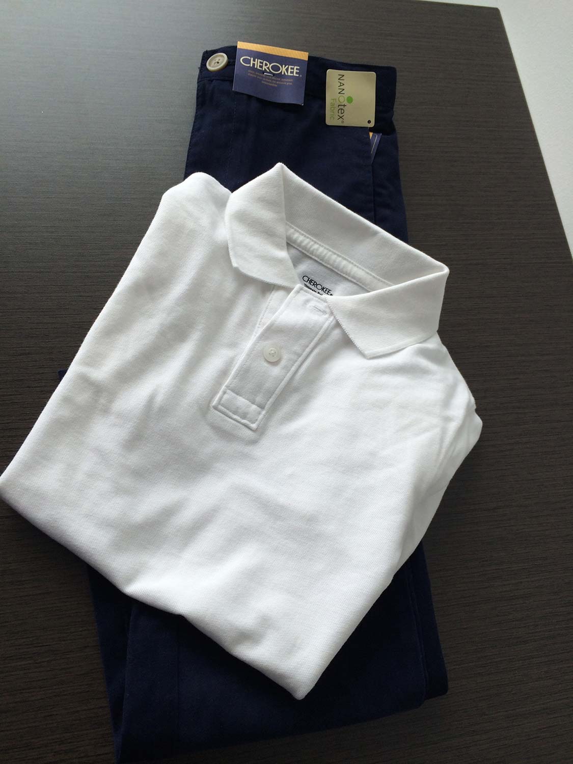 Depending on your school’s uniform policy, it is possible that not all pieces need to be purchased from a pricey uniform provider. We are fortunate that for my younger kids’ school, the uniform is simple navy blue bottoms or tunics and white tops. This gives us the ability to purchase at any retailer offering good value in these items. This year Target has navy blue pants – both the chino & the cargo styles for boys. They also have the white polos by Cherokee – which I bought for my boys for back-to school.
